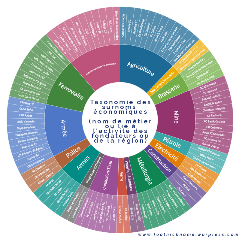 Au fil des articles, je me suis rendu compte que si les surnoms et leurs origines pouvaient être très variés, des tendances fortes se dégageaient. Certains surnoms étaient même devenus des classiques à travers différents pays. Il me semblait nécessaire donc, au-delà de les recenser, d’échanger avec vous une synthèse de ce phénomène. Car oui il s’agit bien d’un phénomène culturel. Chaque week-end, vous pouvez les entendre dans les stades ou les lire dans la presse. Certains ont traversés les siècles. D’autres sont devenus des marques. La planète football entière est touchée même si dans certains pays, ce phénomène est plus fort que dans d’autres. Ainsi, les clubs britanniques, sud-américains, espagnols et italiens sont nécessairement affublés d’un surnom. Certains les cumulent même. En revanche, en France et en Allemagne, les surnoms peuvent parfois se faire rares quand ils ne décrivent tout simplement pas les équipements portés par les joueurs de l’équipe (couleur, rayure …), preuve de son faible ancrage. La presse en raffole car les surnoms illustrent une idée et évitent les répétitions dans un article. Les supporteurs peuvent y trouver une attache avec leur culture ou une identité, d’autant plus que le club a parfois changé de nom mais plus rarement de surnom. A l’inverse, les fans peuvent piquer leur adversaire avec un surnom moqueur. Aujourd’hui, les clubs se sont généralement appropriés ce phénomène car le surnom est un élément fort de la marque-club, laissant parfois leur équipe de marketing se laisser aller à en créer des nouveaux, au mieux à l’aide de vote auprès des supporteurs, au pire en faisant appel à des conseils externes qui connaissent autant le football et son histoire qu’Eric Di Meco la danse classique (quoi que vu ses tacles, il fallait maitriser les pas chassés et les sauts peut-être). Même si le site commence à recenser un grand nombre de surnoms, cette synthèse ne peut être exhaustive, tant il existe de clubs et de surnoms qui me sont inconnus ou pour lesquels je n’ai pas encore eu le temps d’écrire un article. Mais, malgré tout, je pense que les tendances exprimées ici demeureront encore vrai quand le site aura dépassé les 10 000 articles et 10 ans d’existence … (l’espoir fait vivre). Enfin, le classement ci-après repose sur une double entrée : à la fois il s’intéresse aux surnoms en lui-même mais également aux origines de ces derniers. D’où il ne fut pas évident de proposer une synthèse parfaitement structurée et les surnoms peuvent être exprimés dans deux thèmes différents. Enfin, comme leurs explications peuvent être multiples (car souvent il n’existe plus de documents ou de témoins qui peuvent expliquer leurs origines), le même surnom peut se retrouver à différents endroits.
